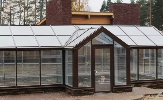 В деревне Клишево (Раменский район, МО) завершено тёплое остекление современной теплицы, пристроенной к дому из красного кирпича и дерева. Конструкция выполнена с использованием коричневого алюминиевого профиля Schüco и энергосберегающего стеклопакета. Установлено 10 конструкций, включая раздвижные стеклянные панели и глухие вставки. Крыша также застеклена — использовано закалённое стекло с УФ-защитой. Вся система оборудована фурнитурой Schüco ASE 80, обеспечивающей лёгкость и плавность хода створок. Проект выполнен в едином архитектурном стиле с основным зданием. Монтаж сопровождался утеплением, герметизацией и аккуратной интеграцией в существующий фасад. Общая стоимость работ составила 622 425 рублей с учётом скидки 3.5%.
