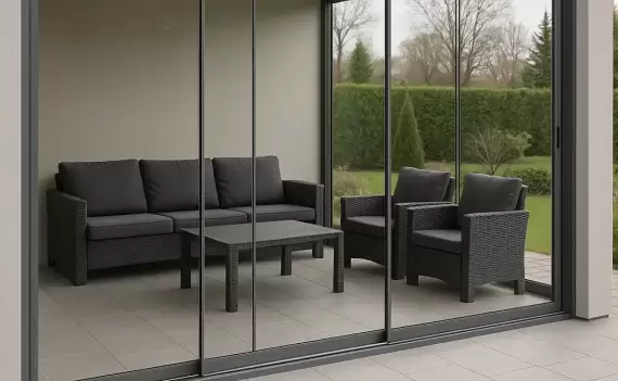 В зависимости от целей раздвижными можно сделать все двери и окна или оставить часть глухими.