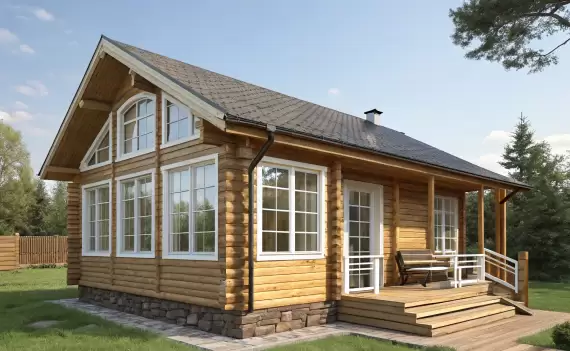 Для дачного дома из бревна была выполнена установка тёплых пластиковых окон Rehau Blitz белого цвета. Всего установлено 9 окон, включая нестандартные конструкции — два треугольных окна и одно арочное окно на мансарде. Все окна оснащены раскладками на стеклопакетах, что подчёркивает стиль дома и придаёт ему уютный внешний вид. Также была смонтирована входная пластиковая дверь с остеклением. Монтаж занял 3 дня и включал доставку, установку конструкций и отделку откосов. Использованные стеклопакеты обеспечивают хорошую теплоизоляцию, сохраняя комфорт в доме в любое время года.